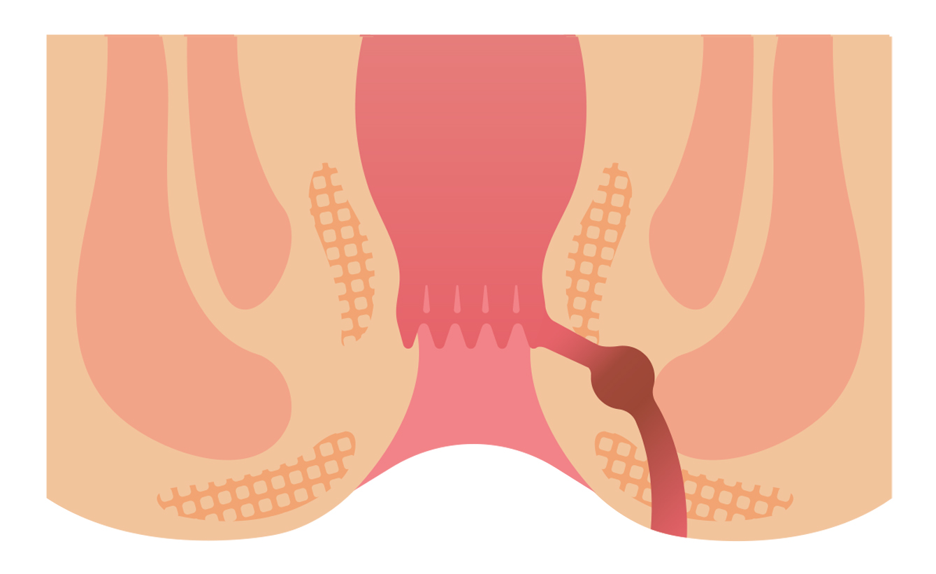 痔ろうは、肛門の奥側から肛門周囲の皮膚にトンネルができる疾患です。